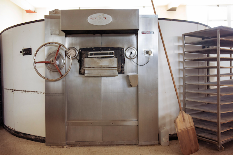 Se daba forma a la pieza y se horneaba en alguno de los cuatro hornos que había por aquel entonces: dos de leña, uno de pisos y uno rotativo. El pan estaba listo al amanecer.